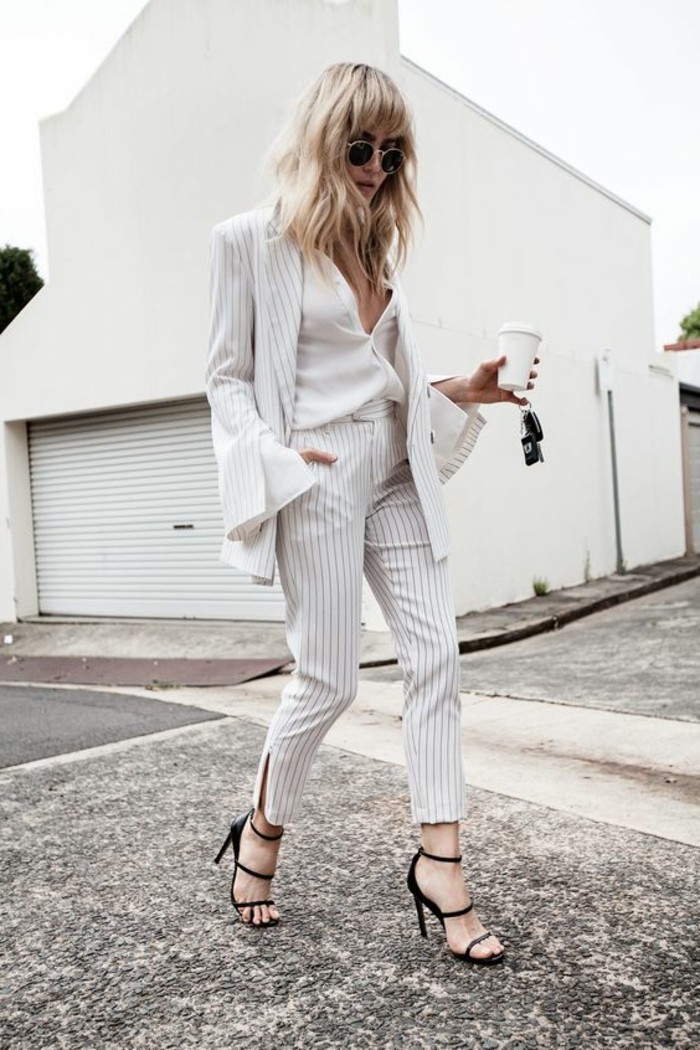 Business kleider gestreifter anzug schwarze brille weises hemd hohe schwarze schuhe