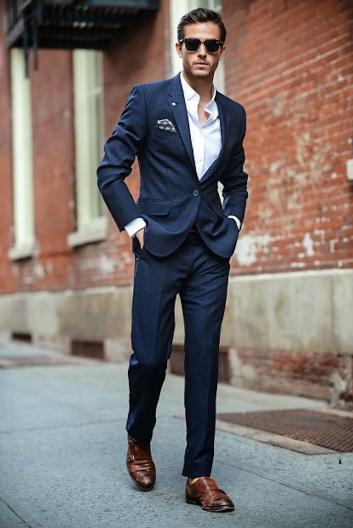 Blauer Anzug, braune Schuhe und welche Accessoires passen dazu? Finden Sie mit unseren Modeexperten die besten trendy Antworte dieser Frage.