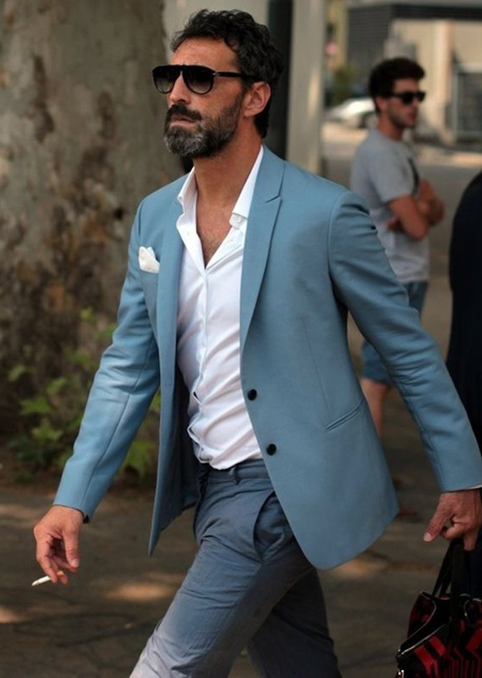 2017 Most Fashion Elegant Blue Men Suit Grey Pants Beach Wedding Tuxedo Custom Young Men Casual