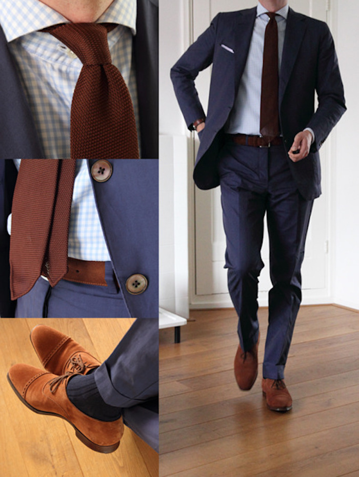 BLUE SUIT + BROWN KNOTTED TIE style men