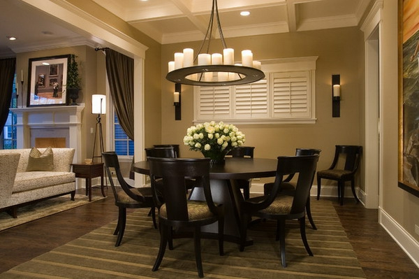 Moderne stühle für esszimmer mit einem extravaganten kronleuchter