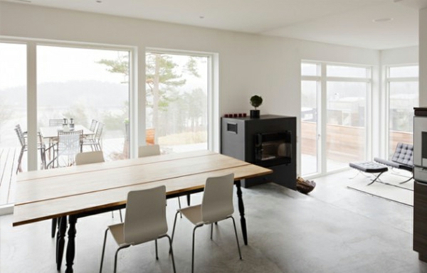 Moderne stühle für esszimmer mit einem großen hölzernen esstisch