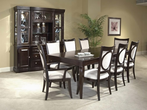 Moderne stühle für esszimmer neben einem hölzernen schrank