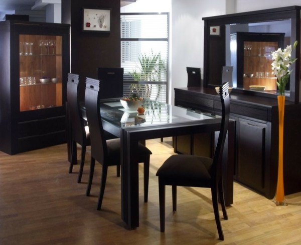 Moderne stühle für esszimmer neben schwarzen möbeln