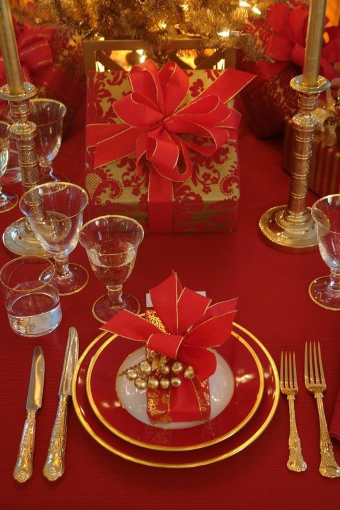 Festliche Tischdekoration Ideen in Rot und Golden