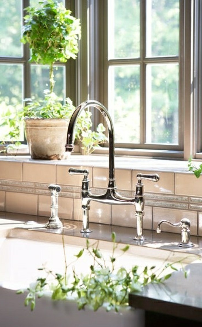 Küche magnolie farbe waschbecken und großes fenster