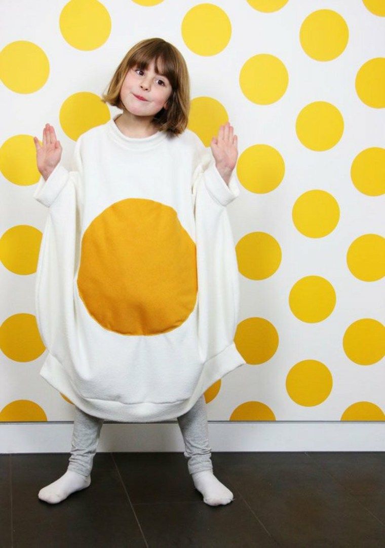 Mädchen braune haare mit pony ei kostüm kinder faschingskostümer weißer hintergrund mit gelben punkten