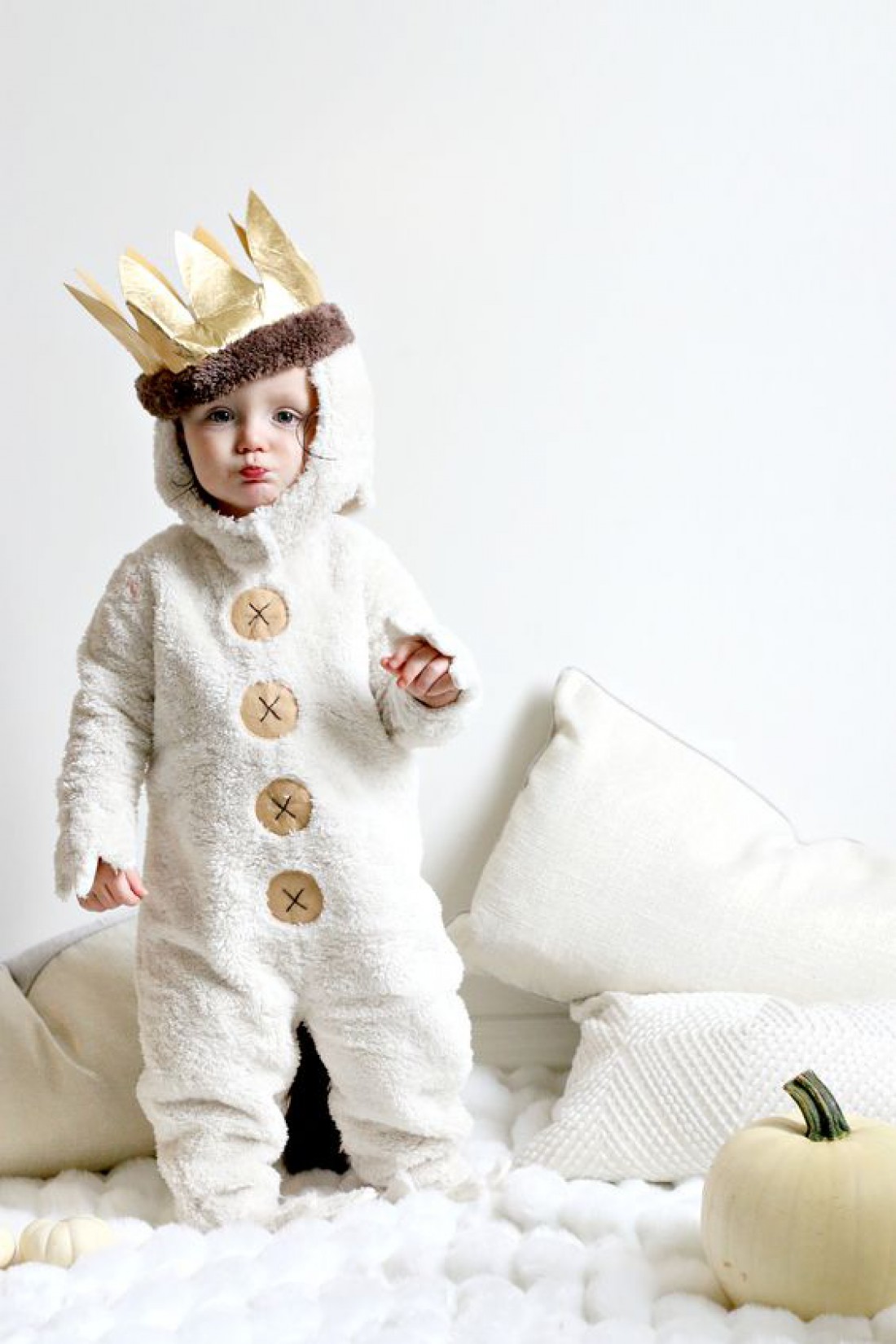 Where the wild things are kostüm faschingskostüm kleinkind in weiß mit krone kissen in weiß