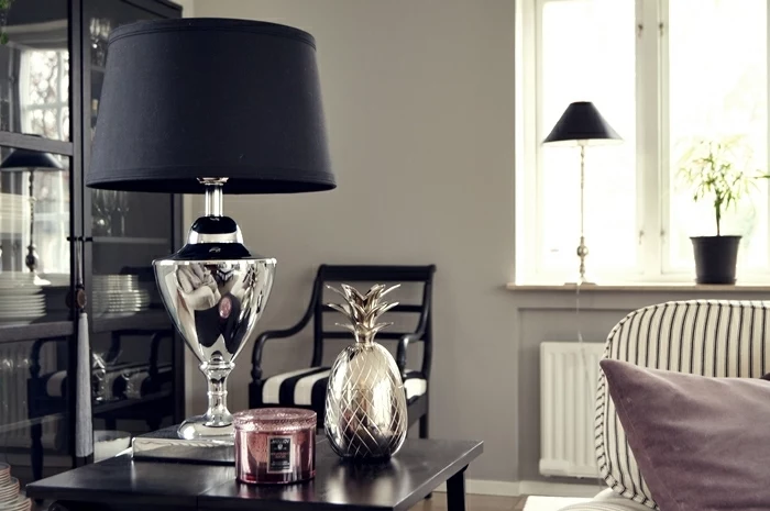 • Ein transparenter Glasfuß, wie bei den Lampen von H&M Home oder Zara Home, lässt die Leuchte luftig und leicht erscheinen und verdeckt nicht die Aussicht.