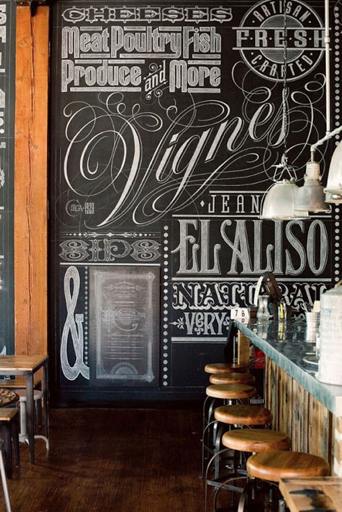 Tafelfarbe in einem lokal mit theke aufschriften mit kreide ganz schicke ausstattung