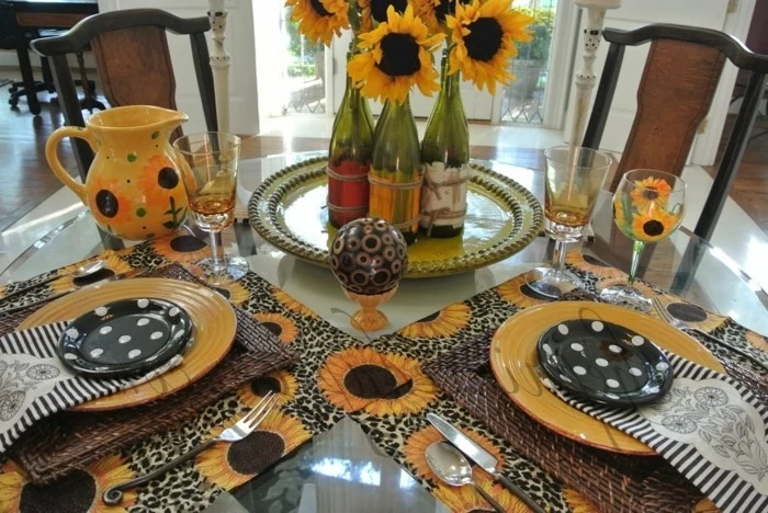 Tischdeko-mit-Sonnenblumen-im-Herbst