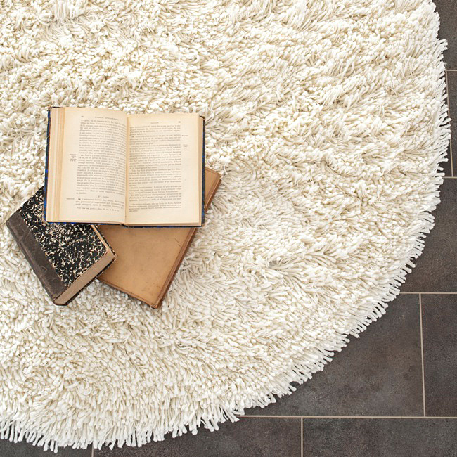 Runder Teppich weiß Bücher