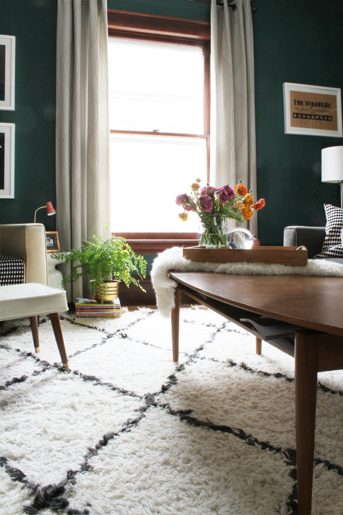 Schönes vintage Interieur moderner Teppich weiß schwarz