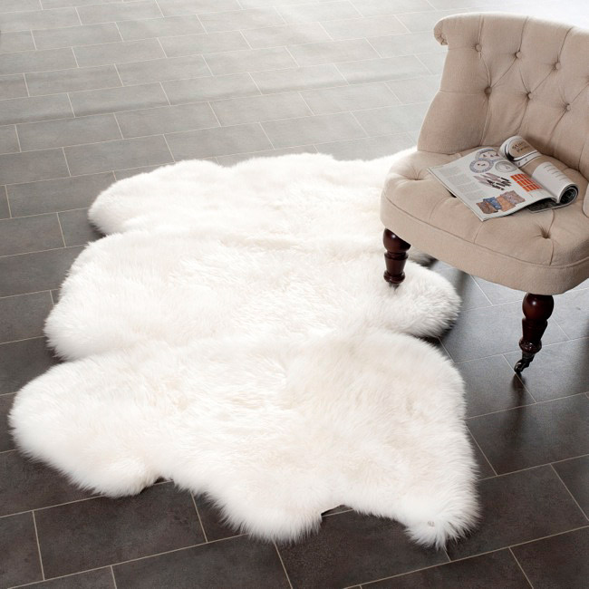 Eleganter Sessel weißes Pelz statt Teppich