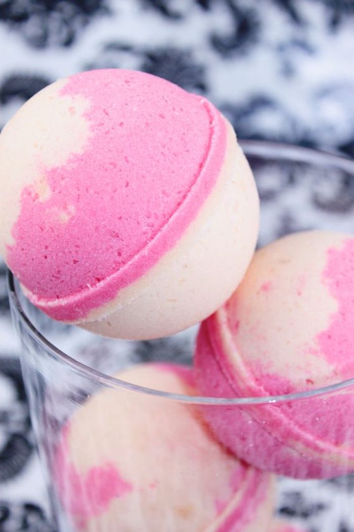 5 lush badekugeln selber machen badekugel in rosa und weiß glas