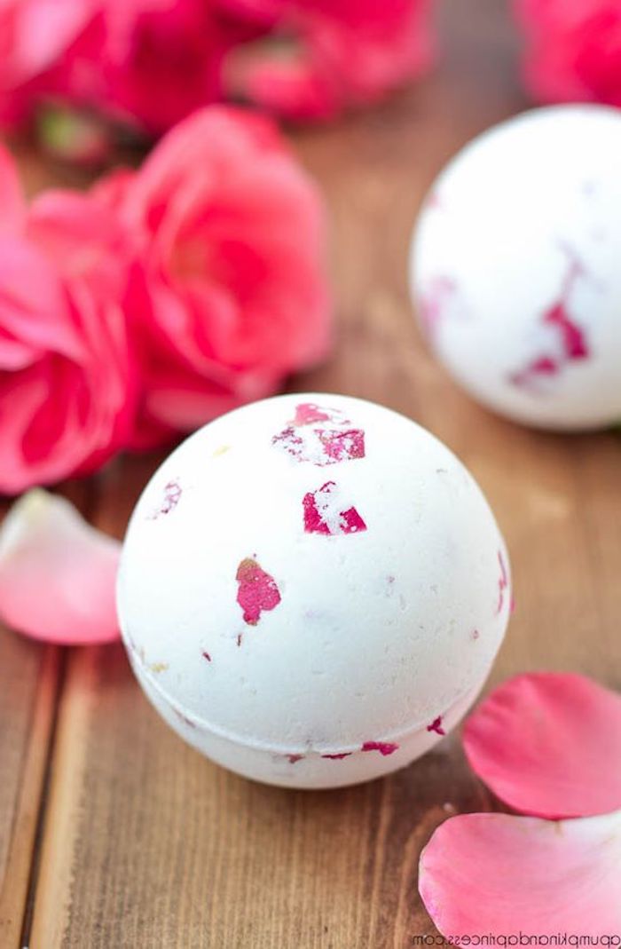 9 badekugeln selbst machen weiße badekugel mit getrockneten rosenblättern rosen