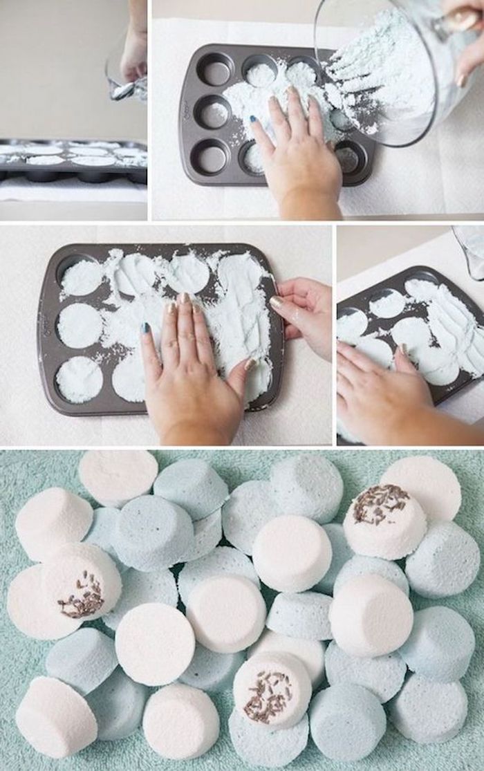 Badekugeln selber machen cupcacke backblech mischung verteilen
