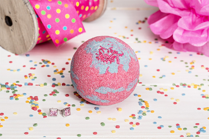 Badekugeln selber machen mit kindern konfetti silberne ohrringe mit rosa kristallen schleife papierblume