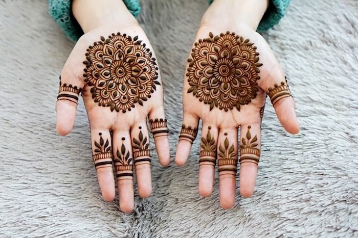6 tattoo selber machen temporäre tattoos mit braunem henna an den händen blumen motive arme verzieren