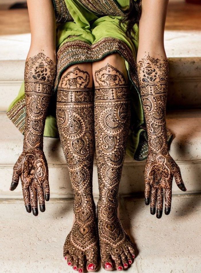 7 henna bilder frau mit großen henna tätowierungen an den armen und an den füßen roter nagellack mehndi traditional