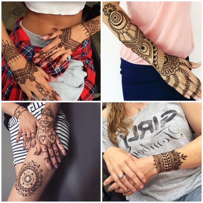 9 henna bilder temporäre tattoos mit braunem henna silberner ringe mit stein henna muster