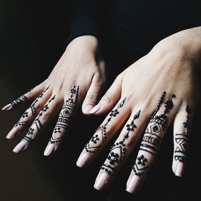 Henna muster für anfänger lange nagel beige nagellack hänge mit schwarzem henna verzieren motive