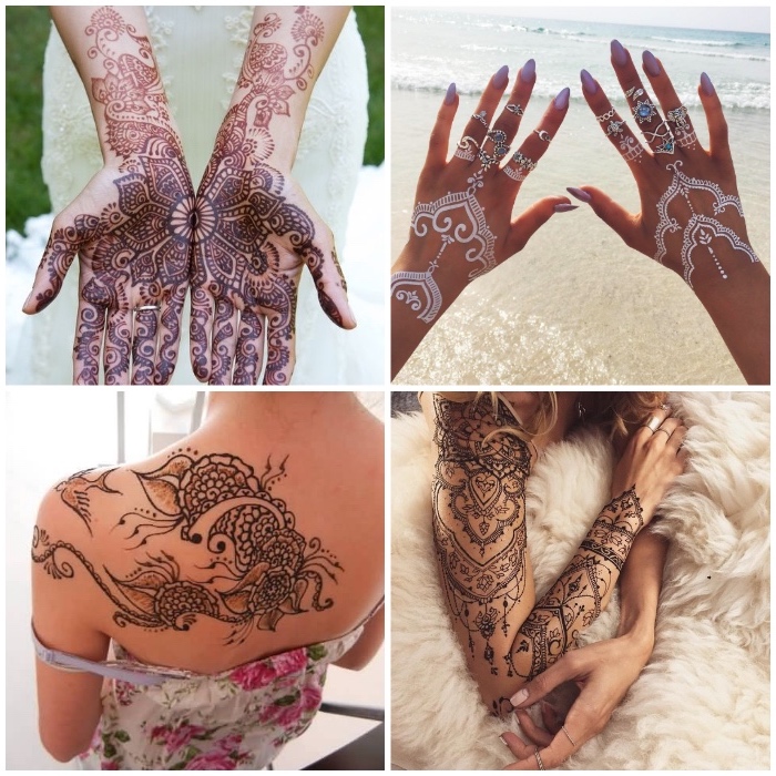 Weißes henna an den armen viele ringe rücken tattoo mit henna mehndi motive