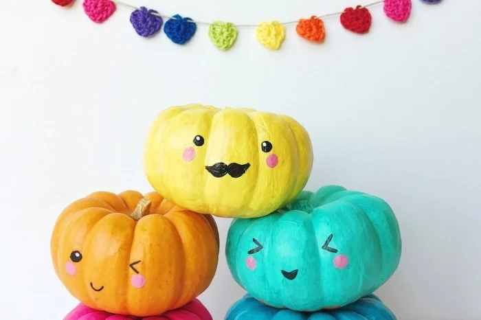 Und wenn du das Schnitzen gemeistert hast? Staple doch mal mehrere Kürbisse zu einer Figur! Ein dicker Holzstab in der Mitte sorgt für Stabilität. Oder du lässt das Messer ganz weg und bemalst deine Kürbisse mit Acrylfarbe – eine tolle und sichere Variante, besonders für Kinder.