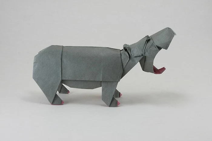 Die Wet-Folding-Technik: Für Modelle, die weiche Kurven statt harter Kanten benötigen – wie bei den Rücken von Säugetieren oder naturalistischen Figuren – gibt es eine fortgeschrittene Technik. Dabei wird das Papier leicht mit einem feuchten Schwamm oder einer Sprühflasche angefeuchtet. Das macht die Fasern biegsam und ermöglicht es, das Papier zu formen und zu modellieren. Nach dem Trocknen behält es seine neue, organische Form. Am besten eignet sich dafür dickeres Papier wie Elefantenhautpapier.