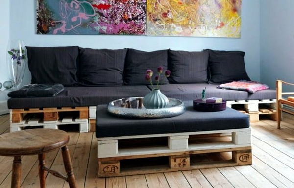 - Outdoor-Lounge: Mehrere Paletten als Basis für eine modulare Sitzecke, kombiniert mit wetterfesten Polstern.