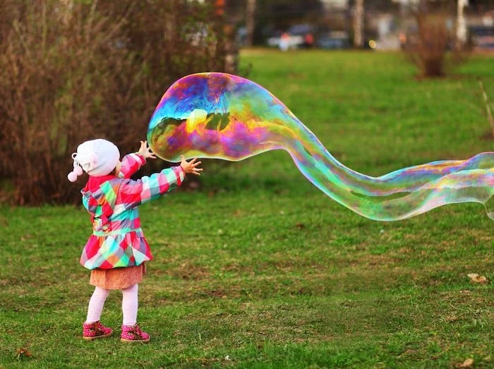 kleine bunte seifenblasen ein kleines kind eine diy anleitung wie man große seifenblasen selber machen kann