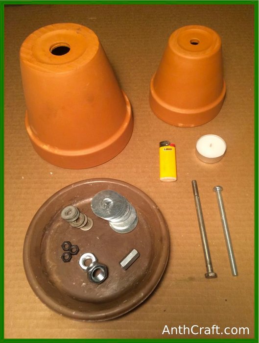 Ein teelicht und ein gelbes feuerzeug und zwei braune große blumentöpfe aus keramik teelichtofen materialliste