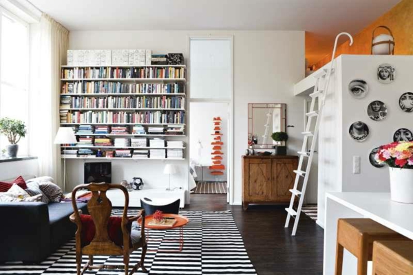 Skandinavisches appartement einrichten bücherregale