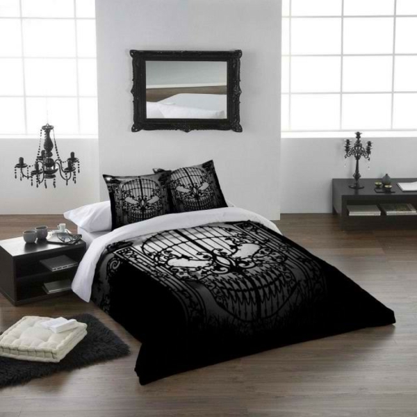 Gothic schlafzimmer in weiß und schwarz