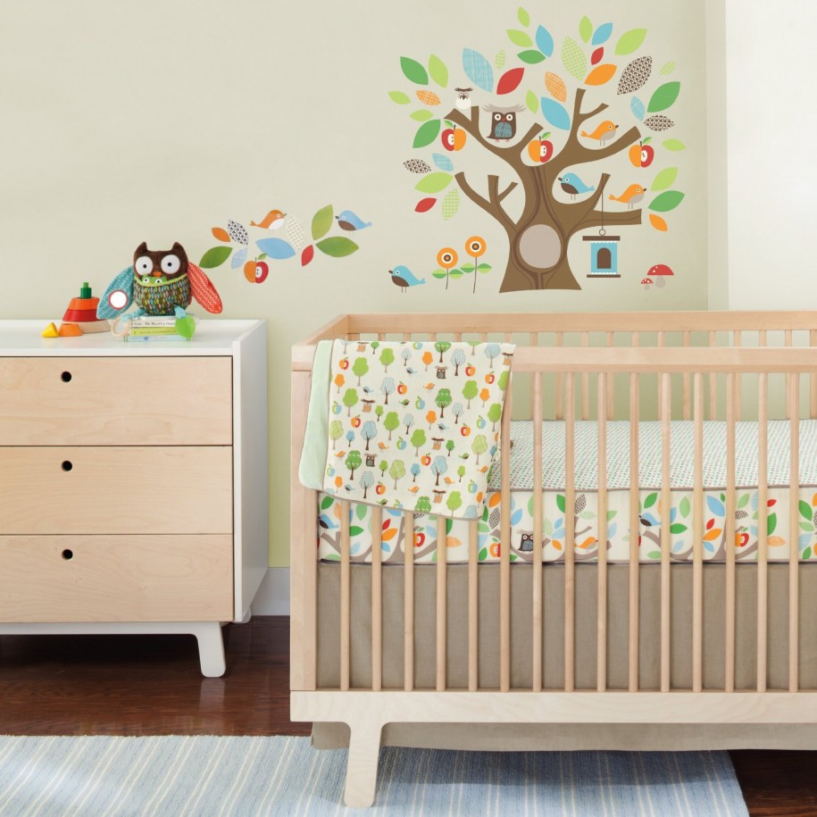 Baby nursery excellent image of girl baby nursery room decoration using colorful tree baby room wall decals including ligth gray stripe baby area rug for nursery and rectangular solid birch woo
