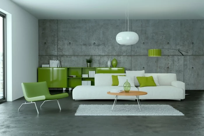 Spielen Sie mit Kontrasten! Die kühle, minimalistische Ästhetik eines grauen Sichtestrichs lebt erst richtig auf, wenn sie auf warme, weiche Materialien trifft. Ein flauschiger Berberteppich, ein Sofa aus cognacfarbenem Anilinleder, Vorhänge aus schwerem Leinen oder massive Eichenholzmöbel schaffen eine spannende und zugleich wohnliche Atmosphäre. Die glatte Oberfläche des Bodens bringt die Textur der anderen Elemente erst richtig zum Leuchten.
