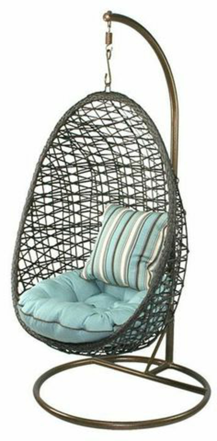 Hängesessel mit gestell hell blau sitz polster und kissen