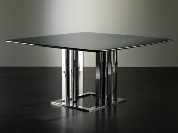 Ein quadratischer Tisch fördert die Konversation. Da jeder den gleichen Abstand zueinander hat, entsteht eine demokratischere, intimere Atmosphäre als an einer langen, rechteckigen Tafel.