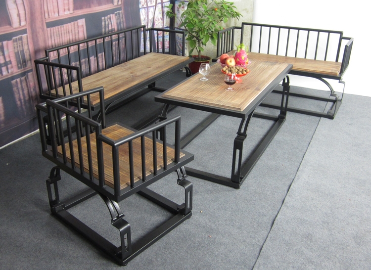 American country with industrial iron wood coffee table tea table retro furniture loft long coffee table