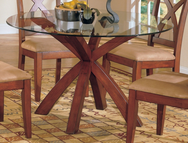 Dining room furniture modern dining room furnished with impressive round glass top dining sets with attractive wooden table legs match cream beige leather dining chairs awesome dining room furnishing resized