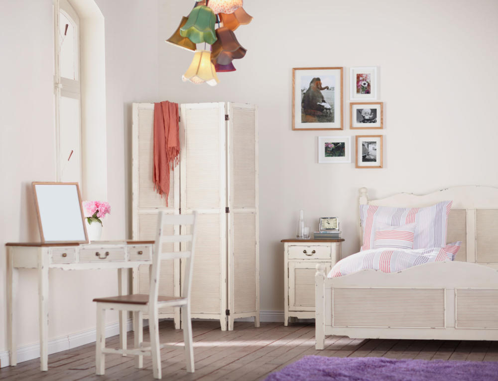 Vintage design möbel im weiss mit dem bett