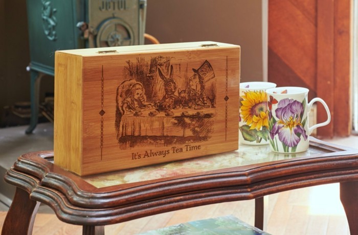 Thés boite thé coffret de the boite à thé bois coffet cadeau alice au pays de merveilles