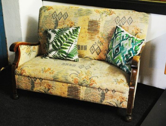 Gelbes Zweitsitzer Sofa mit Pflanzmotive