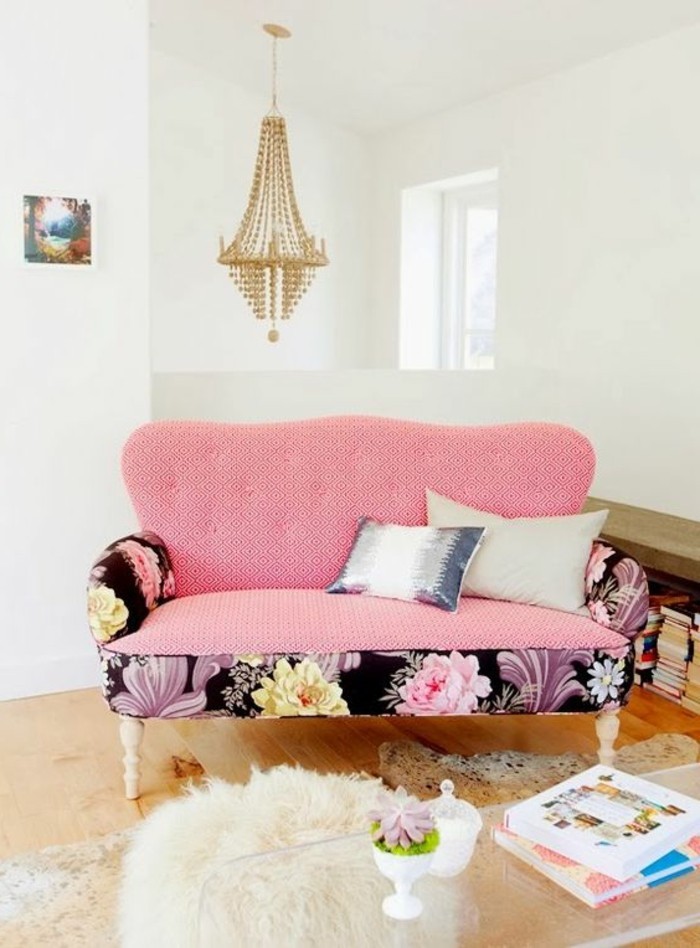Rosa Zweisitzer Sofa zum Mädchenzimmer