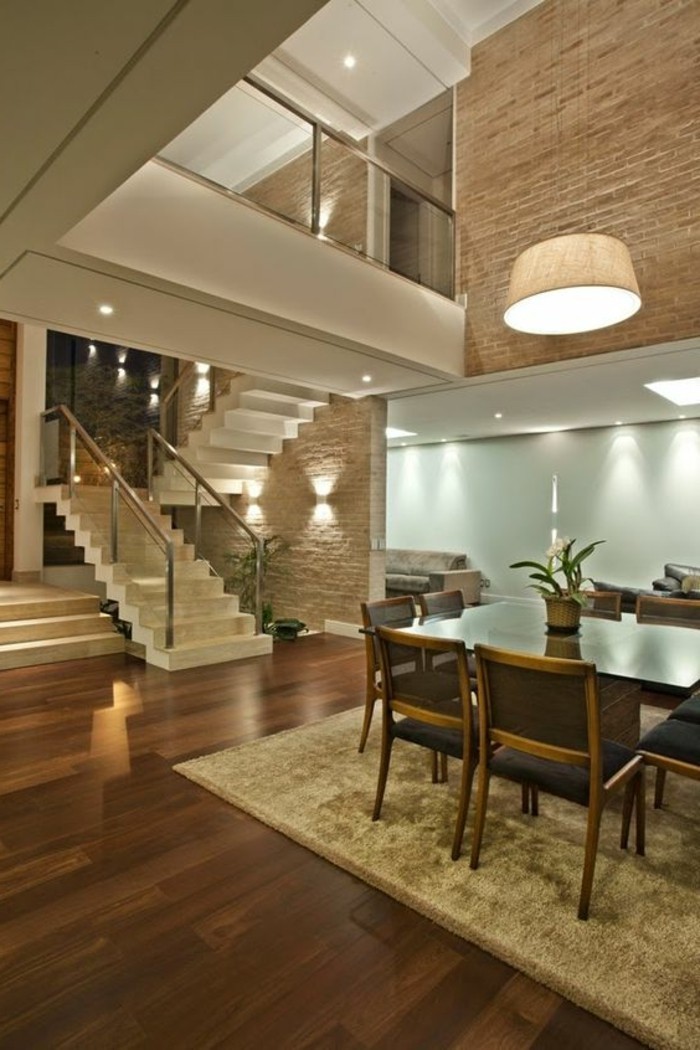 Glasgeländer Treppe und esstisch mit bestulung