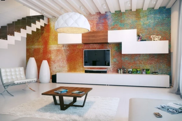 Die Ästhetik deiner TV-Wand endet nicht beim Möbelstück. Die Wand dahinter ist deine Leinwand. Statt nur weißer Raufaser, denke über diese Optionen nach:
