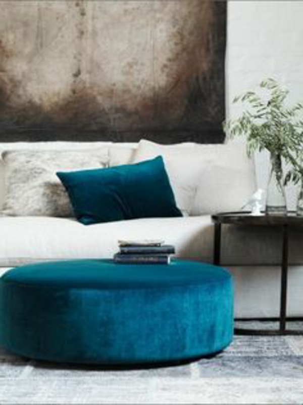 Samt tapete und samt möbel weißes sofa und blauer hocker