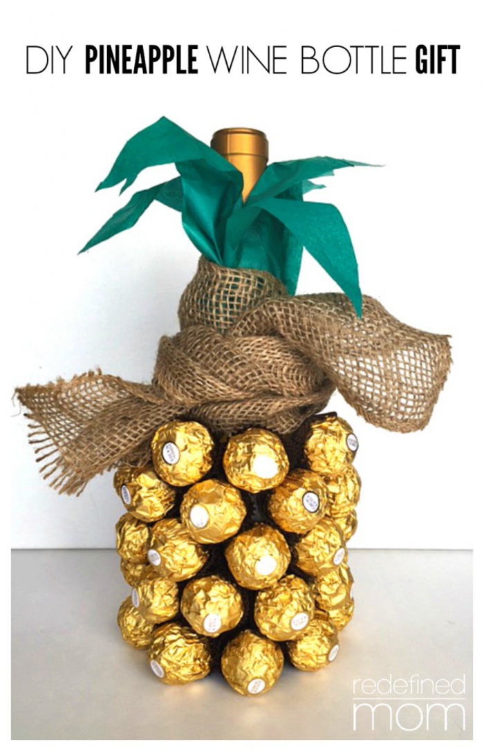 Weinflaschen verpacken dekoration ananas bonbons selber machen geschenk diy
