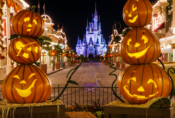 Bilder zu halloween sechs kürbisse hüten den eingang zu disneyland mit lächeln