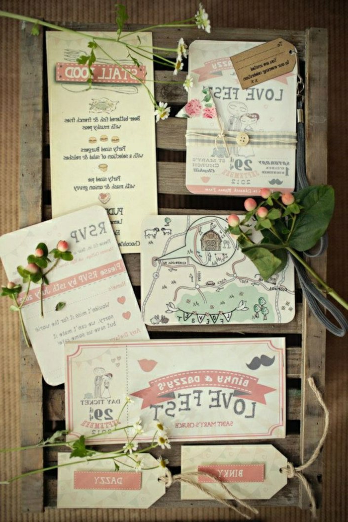 Einladungskarten selbst gestalten Love Fest Thema originell kreativ